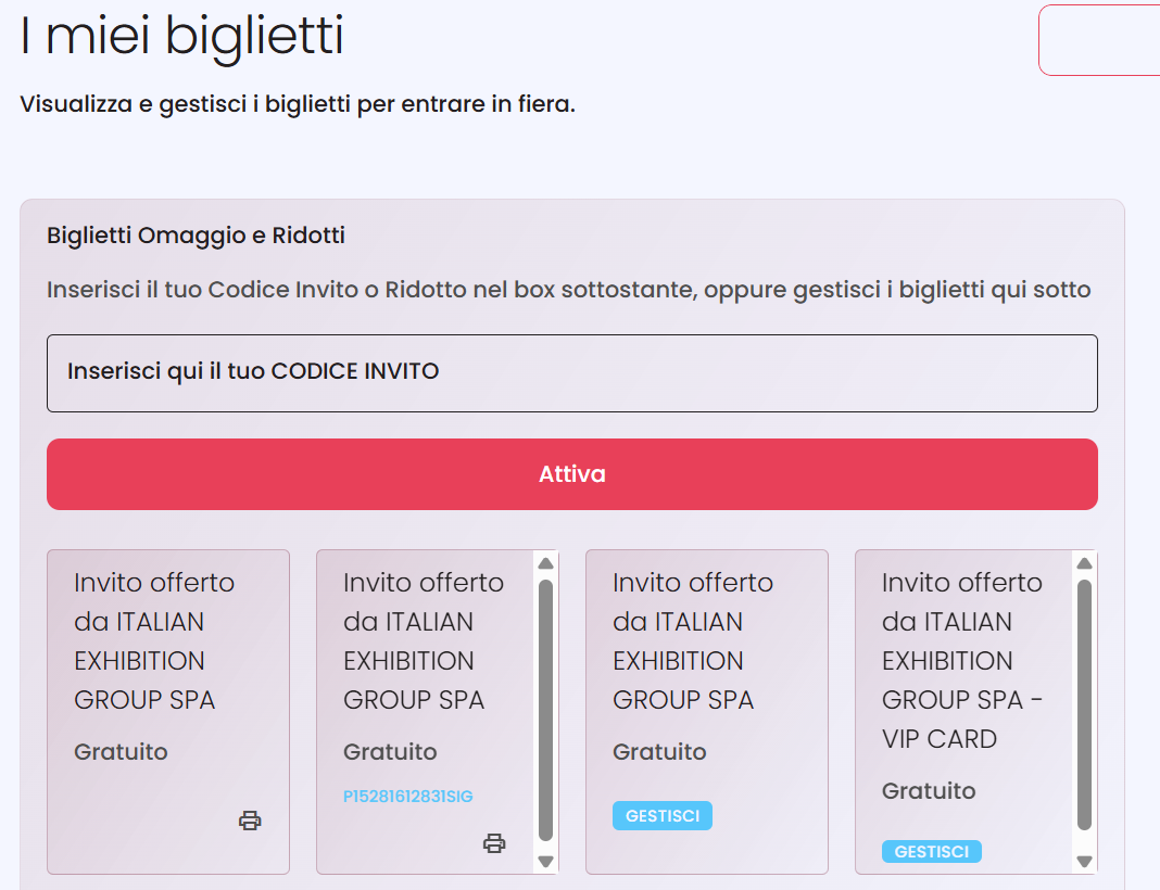 Nella sua area riservata il visitatore potrebbe avere anche altri biglietti, offerti da altre aziende. Se vuoi che entri con il tuo biglietto, dovrai segnalargli di fare attenzione a scaricare proprio quello! Ricordati che è contrassegnato da “Biglietto offerto da + tua ragione sociale”.